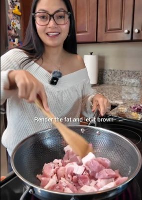 Render the pork fat and let the meat brown.