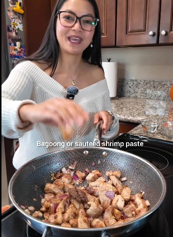 Season with a bit of salt, black pepper, ginger, and onion. Sauté for a few minutes, then add bagoong or sautéed shrimp paste and stir well.