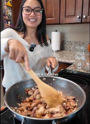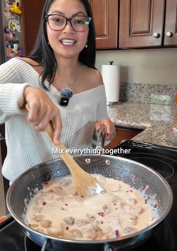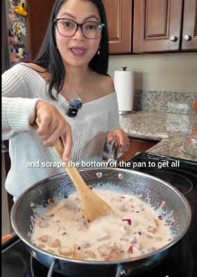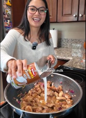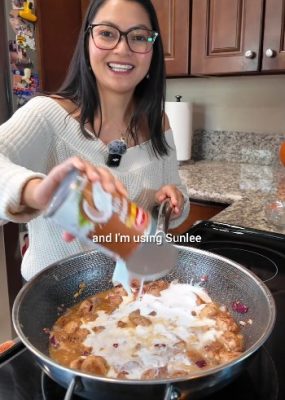 Add one can of Sunlee coconut milk. Mix thoroughly and scrape the bottom of the pan to release all that flavor.