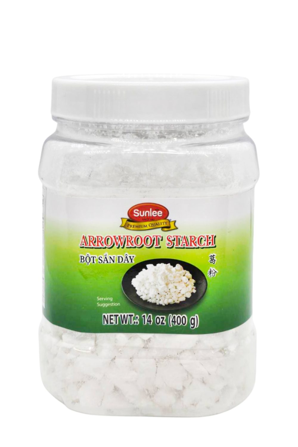 E107SL14 Sunlee Arrowroot Starch (plastic square shape) 14 oz (400 g) x 12 jars